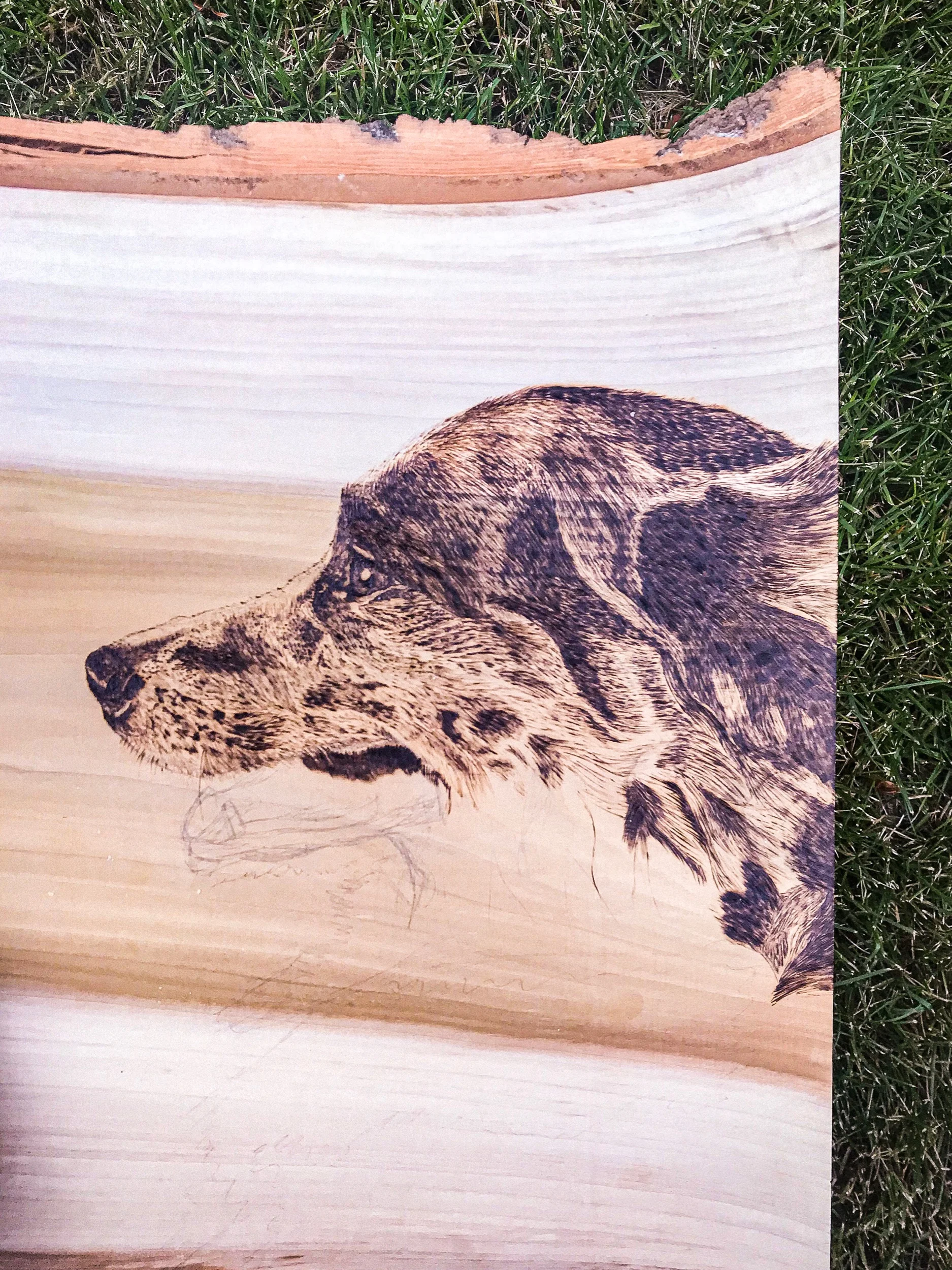 Drawing on Live Edge wood This is a whole new ball game. These drawings turn out so beautiful after lots and lots of hours of drawing. We can’t wait to do more of them! Tap on image below for progress pictures. Meet Jake Almost done! See finished product by clicking on the image. Beatris BogomilovaJuly 10, 2019art in progress, pyrographyComment Facebook0 Twitter LinkedIn0 StumbleUpon Reddit Tumblr 0 Likes